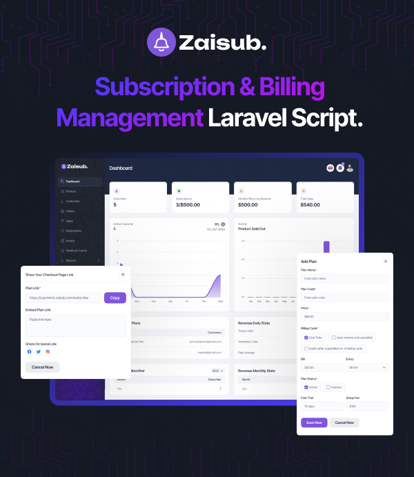 Zaisub , a Laravel-based Subscription & Billing Management script, is your all-in-one solution for seamless and efficient subscription...